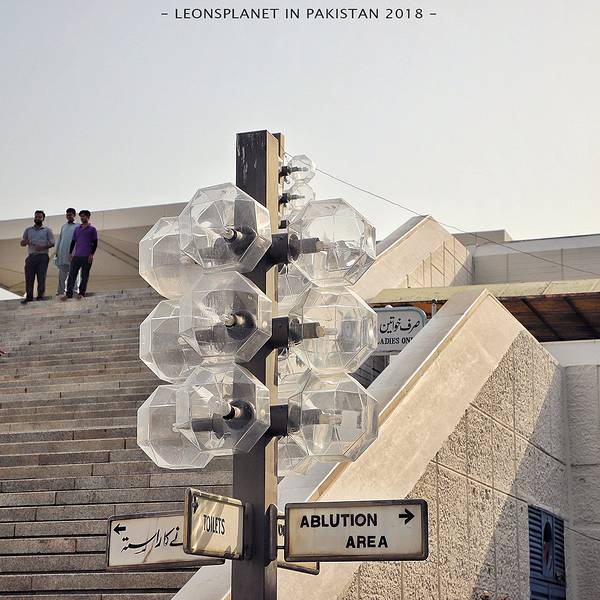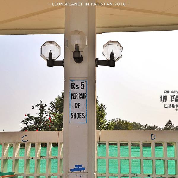 再这样任人摆布地拍下去,我可能完全没有时间好好参观一下清真寺了。”然后接过我的鞋,示意我进去进清真寺要脱鞋,这是几乎所有清真寺的规矩。费萨尔清真寺虽然是现代建筑,但也不例外。前院入口站满了寄存鞋的朝拜者,5卢比存一次(约合3毛钱人民币),我拎着鞋走过去,正要掏钱的时候,管理员看着我说了一句...进清真寺要脱鞋,这是几乎所有清真寺的规矩。费萨尔清真寺虽然是现代建筑,但也不例外。前院入口站满了寄存鞋的朝拜者,5卢比存一次(约合3毛钱人民币),我拎着鞋走过去,正要掏钱的时候,管理员看着我说了一句:“Chinese free!”然后接过我的鞋,示意我进去。▲路灯柱上贴着鞋子寄存价格(英文Rs是卢比的缩写)虽然5卢比根本不算什么钱,但我还是被这意外的免费待遇怔了一下,回过神来连忙补了一句:“Thanks a lot!”,随后迎着众多老巴男男女女仿佛高看一眼的目光,大步迈入灰白花岗岩铺就的庭院。从远处走近的老巴看到迎面而来的我,不约而同地轮番向我打招呼,有一些老巴掏出手机,三五成群地围拢在我左右,开启自拍模式。还有一些带孩子的夫妇喜欢把孩子叫过来同我合影,然后一大家子人非常默契地以我为中心站成一排照全家福。面对这些极度自来熟的陌生人,陷入受宠若惊状态不能自拔的我,忽然间有一种明星出街的感觉。越往里走,遇见的老巴越多,就有更多的人举着手机走到我身边,二话不说一顿狂拍……人太多的时候,还要站在旁边排队。老巴们对自拍也是饶有研究,会各种找角度,拍得不好,再重拍,我杵在那里脸部肌肉都要笑麻痹了……慢慢开始招架不住他们这种如黄河泛滥一发不可收拾的热情。当我想继续往里走的时候,排队合影的人追随我的脚步又围上来,有的老巴不由分说地把手臂搭在我肩膀上,自顾自地按着手机快门,根本不给你拒绝的机会。于是,我终于理解为什么明星出门都帽子、墨镜、口罩各种装备武装到牙齿,不是他们耍大牌、不亲民,而是成为焦点的压力实在太大了……被人拉着拍照真skr体力活。再这样任人摆布地拍下去,我可能完全没有时间好好参观一下清真寺了。
