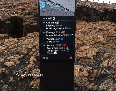停车场:公园一共有4个停车场,多数人和大巴车会停在P1,相当于正门吧。孤独屹立的岛屿64°09′N,021°56′W
