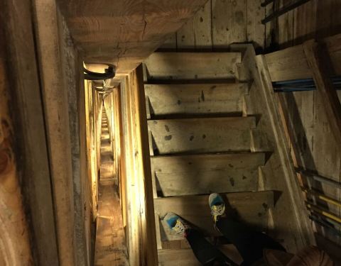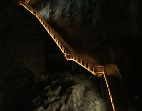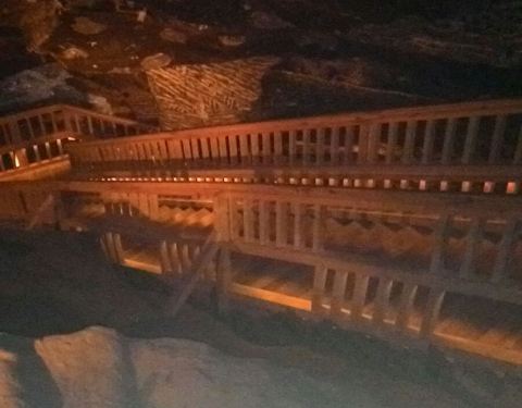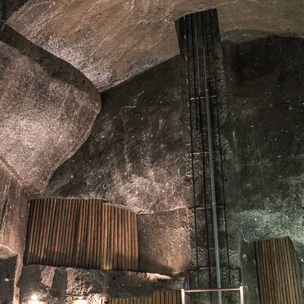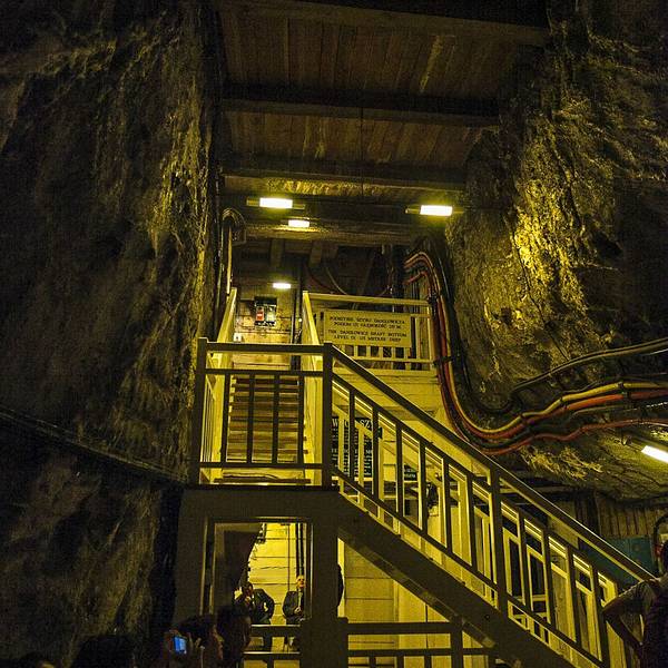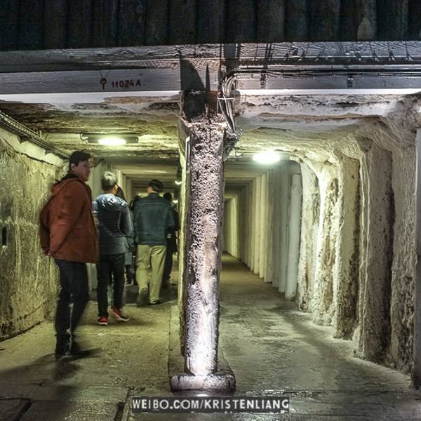 英文向导团每半个小时一团,拿上讲解器心怀忐忑的跟着向导进入这个神秘的地下空间,首先迎接我们的是盘旋下降的木质楼梯,头晕目眩的下了54层楼梯,向导才终于停下了脚步,语气轻松的介绍道,“盐矿总长有300多公里,深度有327米,一共9层,你们现在只是在第一层矿道,与地面的垂直距离不过60米左右。接下来我们就要进入矿道了,请大家紧紧跟随我,千万不要掉队,如果在盐矿中迷路的话,可能就永远都出不来了……”