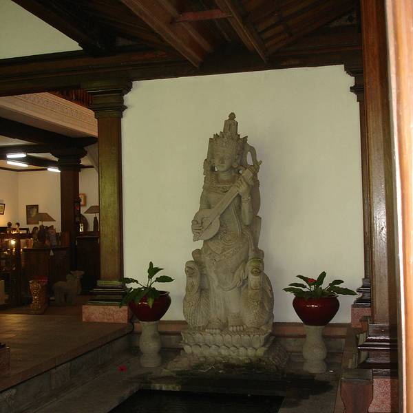 园林中有一座Sri Chinmoy大师的雕像。小吃也非常不错。在这里处处可见精致的石雕木雕在这里处处可见精致的石雕木雕。巴厘岛的艺术风格有着自己的特色,如果能花上大半天甚至一整天,在这里慢慢欣赏,感受巴厘岛的历史文化,想必也是绝好的一种体验。园林中有一座Sri Chinmoy大师的雕像。有兴趣的可...在这里处处可见精致的石雕木雕。巴厘岛的艺术风格有着自己的特色,如果能花上大半天甚至一整天,在这里慢慢欣赏,感受巴厘岛的历史文化,想必也是绝好的一种体验。园林中有一座Sri Chinmoy大师的雕像。有兴趣的可以上WIKI看看大师的介绍,这里不赘述。园林中的一处亭子,小哥正拿着锤头凿子,埋头仔细地雕刻着什么。凭门票,可以在这里的咖啡厅免费领取一杯咖啡或茶以及一份小吃。
