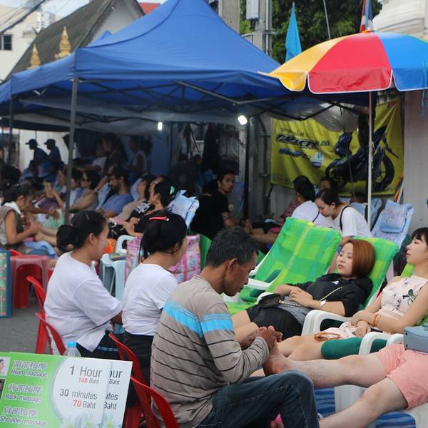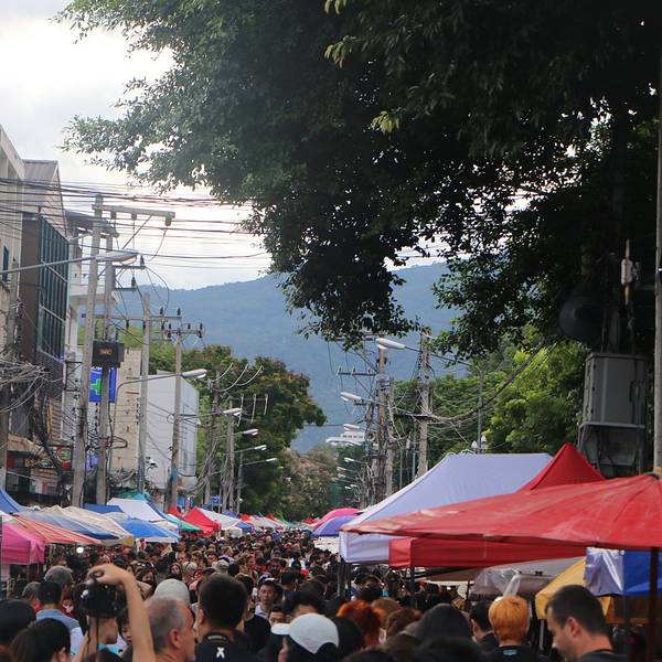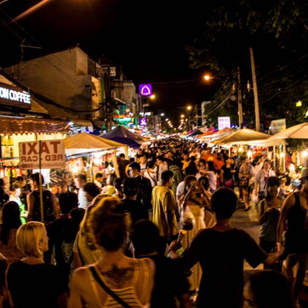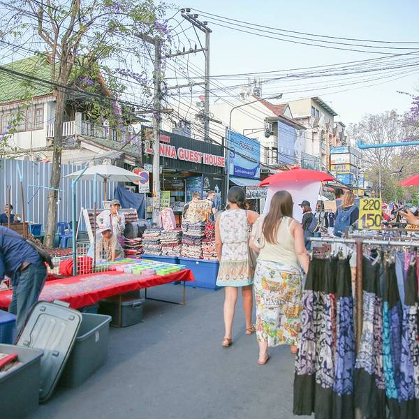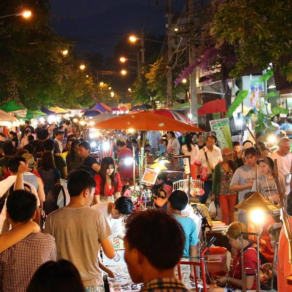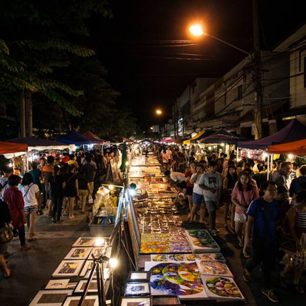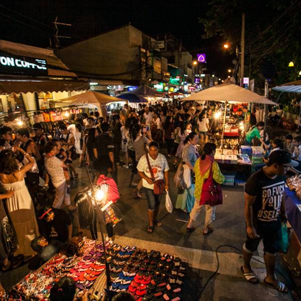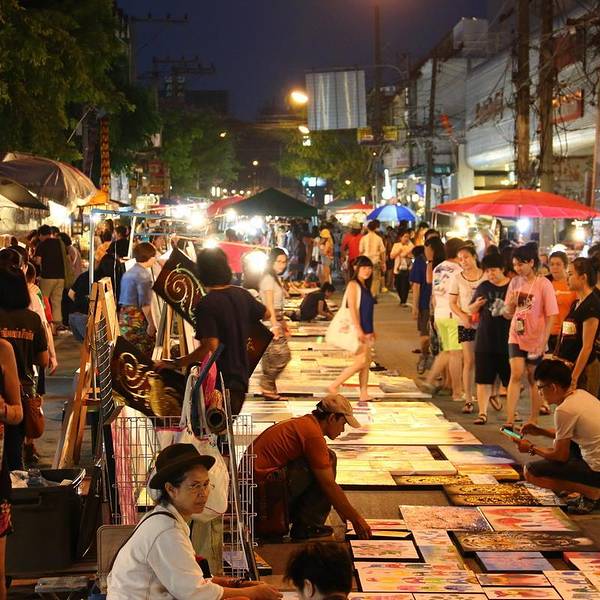 这里被誉为清迈甚至全泰国最有名的市集,除了其他夜市所能买到的食品,纪念品等外,还有很多当地的年轻设计师创作的融合泰国古典与现代美学的小玩意,主要售卖当地的很多工艺品,当然也有很多小吃摊。每周日下午4点开始封闭为步行街,堪称清迈规模最大的夜市。夜市所卖的纪念品,包罗万象,价格便宜。每当夜幕降临,各种手工艺品汇集的清迈长康路成为最让游客心仪神往的繁华夜市。