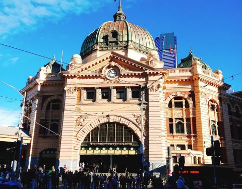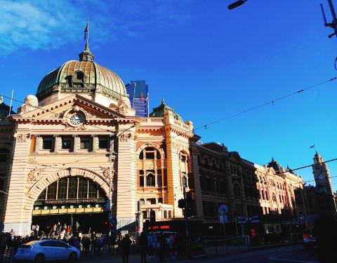 弗林德斯街火车站,陪一起自驾的朋友去火车站接人,还是挺漂亮的,大概也是要不错的天气陪衬吧,古色...弗林德斯街火车站,陪一起自驾的朋友去火车站接人,还是挺漂亮的,大概也是要不错的天气陪衬吧,古色古香,可以想象当年英国人登陆的风情