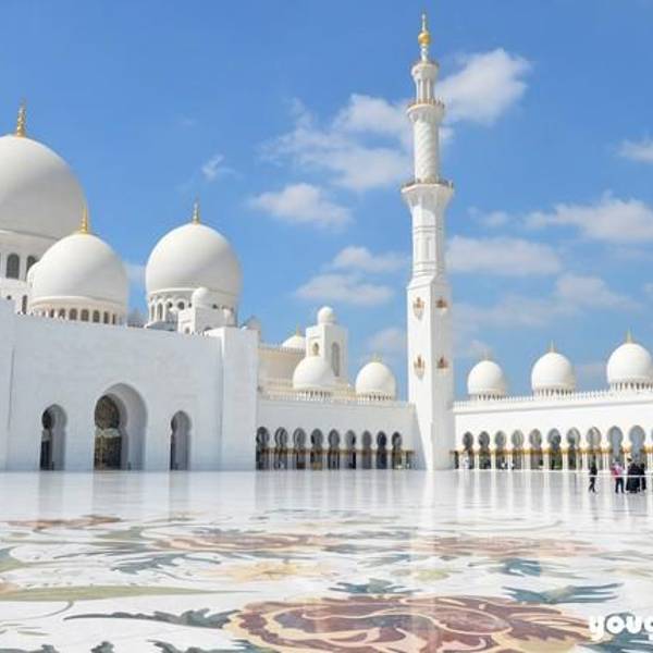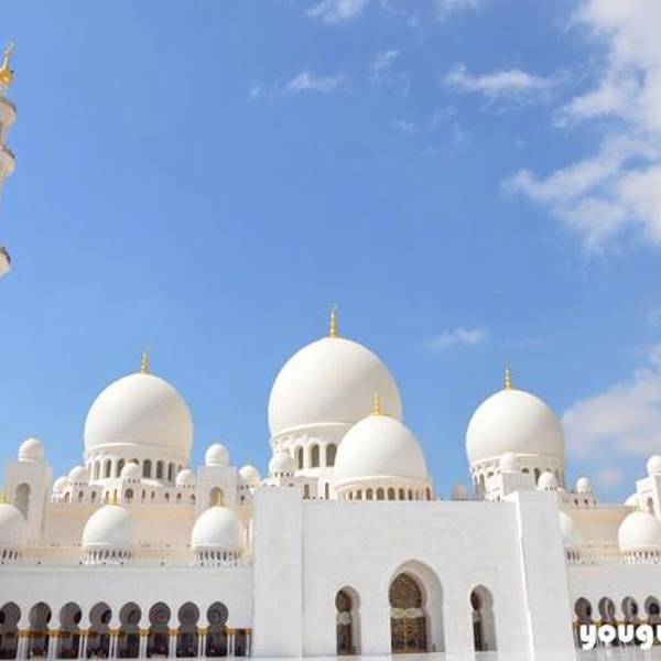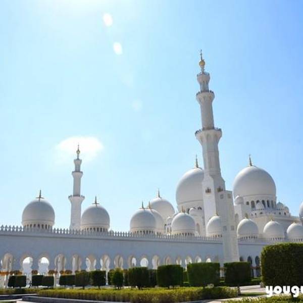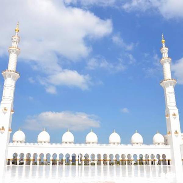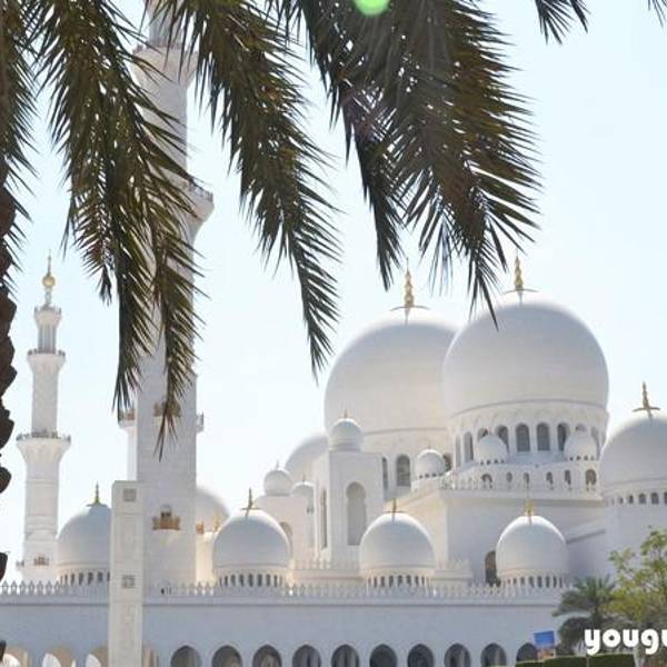 白的一尘不染的谢赫扎伊德大清真寺在蓝天白云的衬托下显得更加的圣洁!