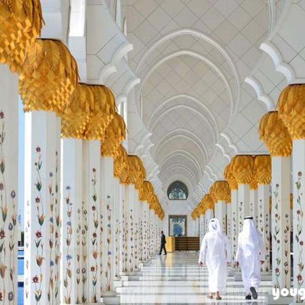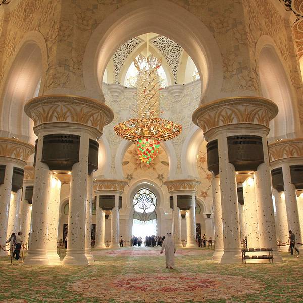 白色原来也可以这么的奢华添加手工编织的最大地毯80万美元一盏的水晶吊灯围和的长廊,包金的廊柱地面光洁如镜精美的大理石拼花阿布扎比大清真寺总共耗资55亿美元,足够再造2个帆船酒店