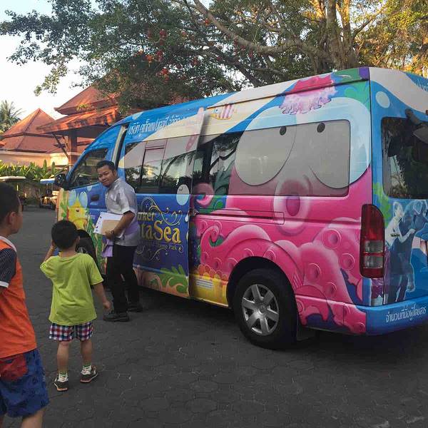 主题乐园的客车服务中心提供普吉岛上所有宾馆和酒店到普吉幻多奇乐园的安全和舒适的往返接送服务。
