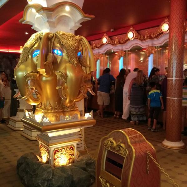 在皇家雅宴自助餐厅用餐,在金碧辉煌的象宫殿剧院欣赏精彩的歌舞表演。