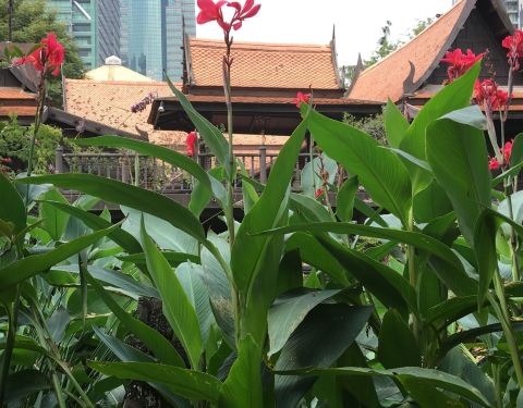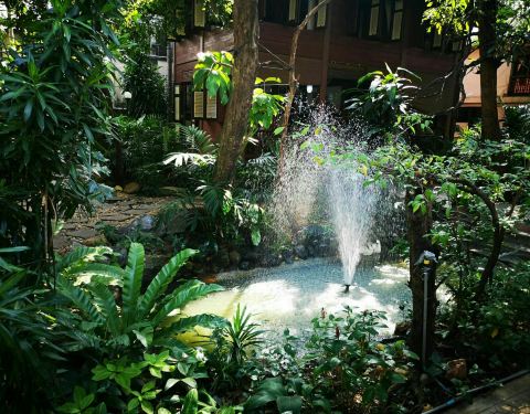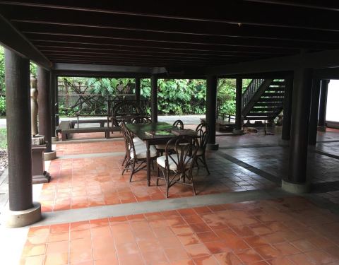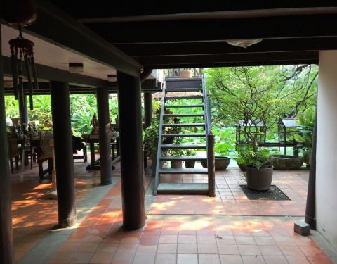 非常漂亮的传统泰国建筑,郁郁葱葱的园林景观,楼房一楼是敞开的,上了楼之后是日常起居的地方,一楼真的很凉快,坐在那里微风轻轻吹起,很舒服