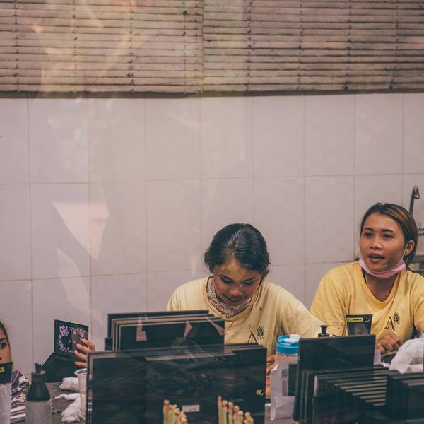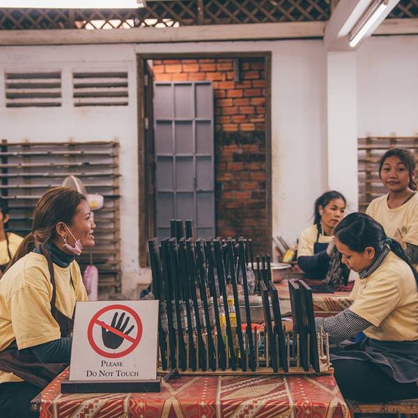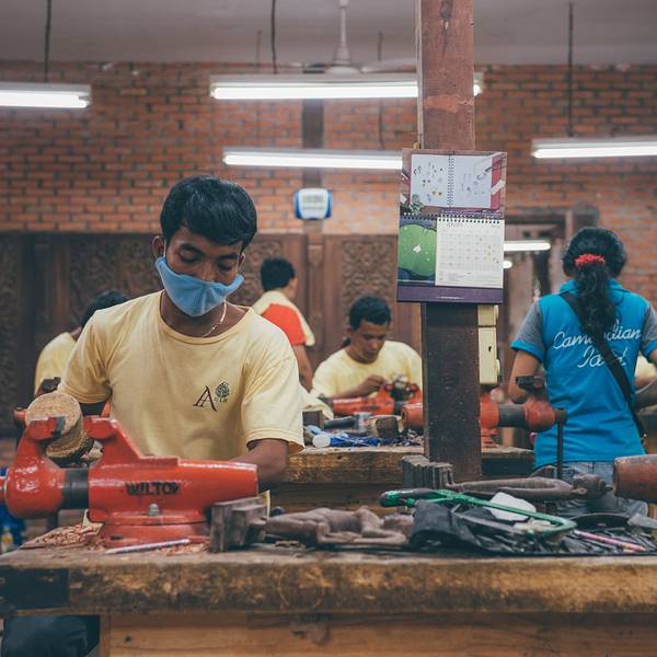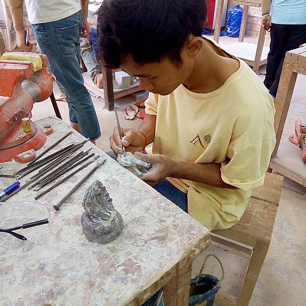 为协助传承柬埔寨传统工艺,欧盟国家在暹粒市成立“Artisans D’Angkor”艺术学校,专门招收孤儿和贫童,让他们专心学习传统技艺,制作工艺品进行销售。