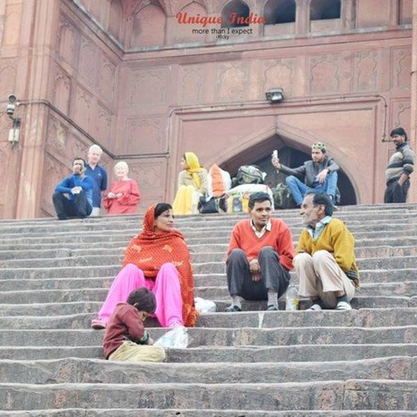 贾玛清真寺门票300RS,女生和穿短裤的男的都会被要求裹上长衫,当然也是要交钱的。先去了贾玛清真寺从胡马雍陵出来已经下午了,准备红包附近。先去了贾玛清真寺。