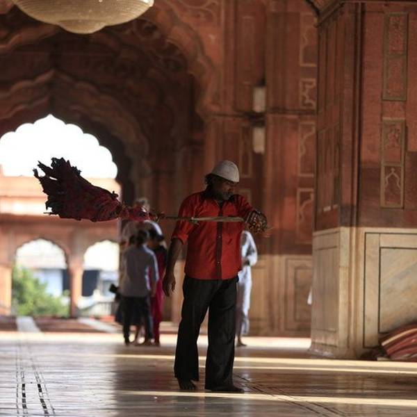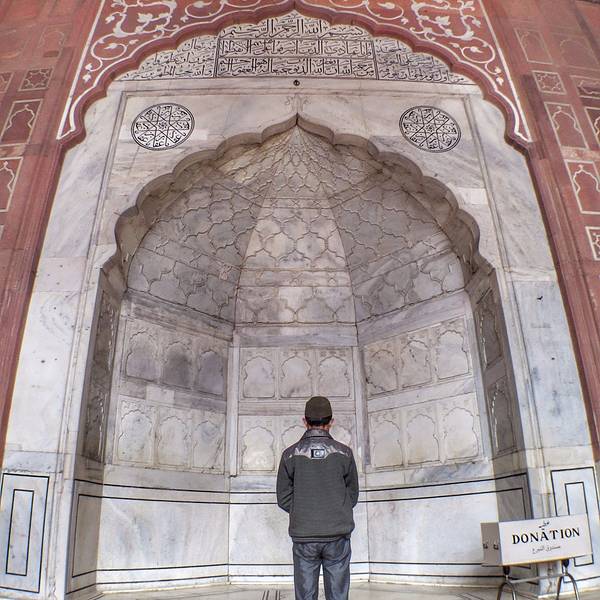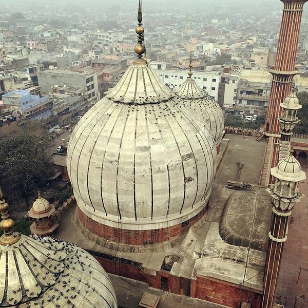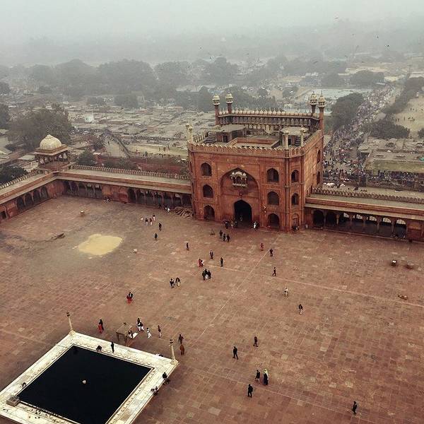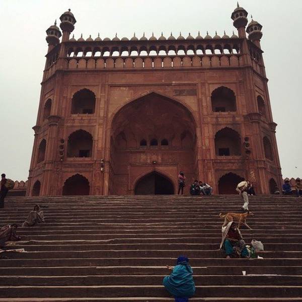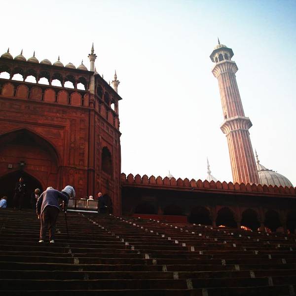红堡没看成转道去了隔壁的新德里贾玛清真寺。他印度最大的清真寺,也是世界十大清真之一,可以容纳25000人同时祈祷。四角是高耸的宣礼塔,但是额外售票100卢比可以登上宣礼塔(我没选择上,之后有朋友告诉我如果你上了塔,上面会继续让你捐款不然不放行,是真是假我也无法证实,不过可惜的是这是个唯一一个女士可以上去的清真寺宣礼塔了,居然没有把握机会!)。