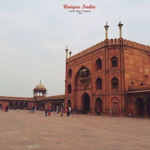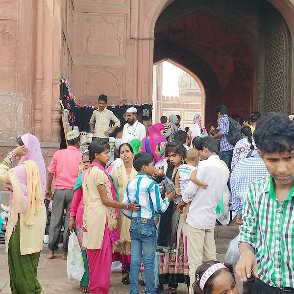 门票300卢比,女性必须...红堡参观不能,立马转道贾玛清真寺,走路大概15分钟吧,清真寺在热闹的集市当中,是世界十大清真寺之一,的确,很漂亮,看过纯白的清真寺,这种红色的还是第一次,而且是砖红,特别的美!