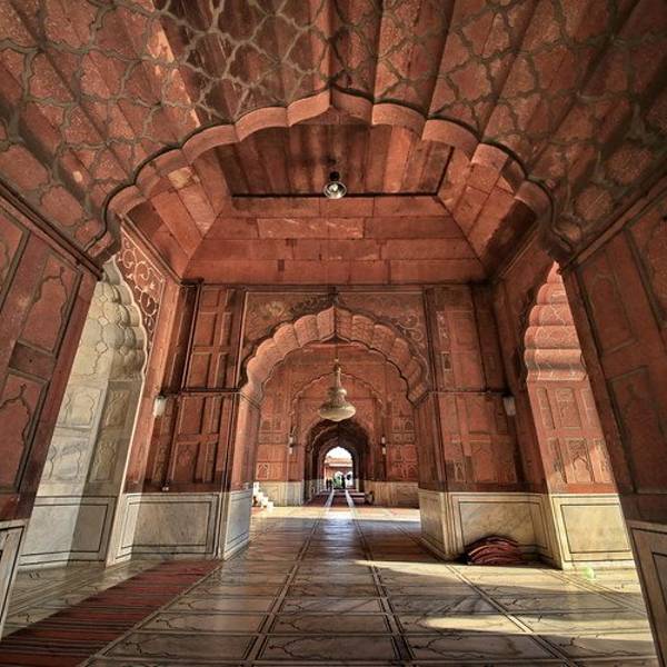 坐黄线到chawri bazar站,步行就可以到清真寺。贾玛清真寺门票300RS,女生和穿短裤的男的都会被要求裹上长衫,当然也是要交钱的。最坑的是门口放鞋...从胡马雍陵出来已经下午了,准备红包附近。先去了贾玛清真寺。