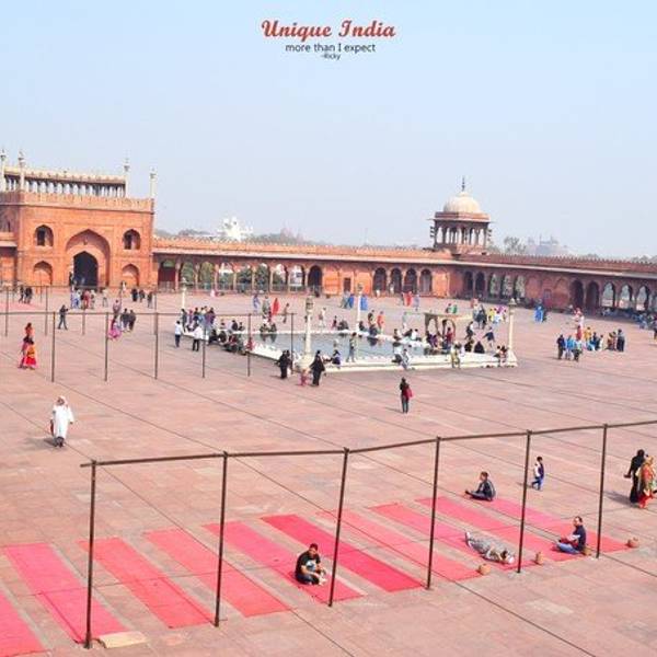 ...门免费,女士租长袍100卢比(强制),携带照相设备200卢比,存鞋现在免费,登宣礼塔100卢比贾玛清真寺 (Jamma Masjid)