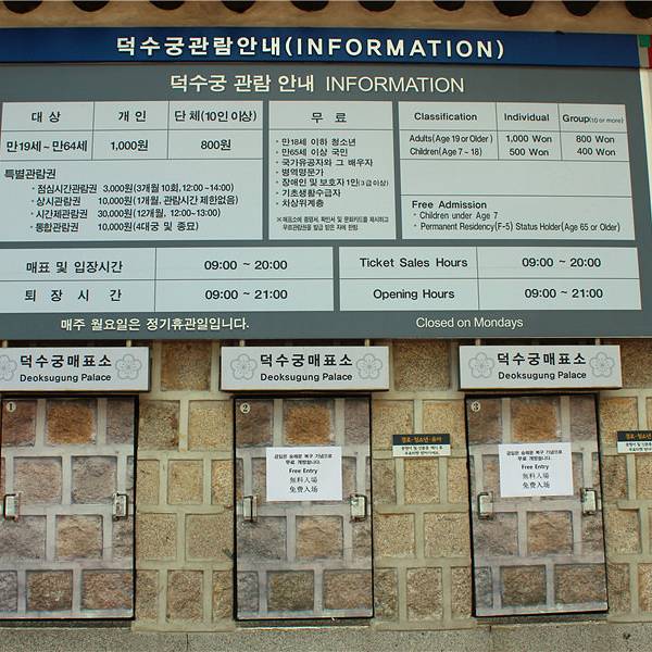 开放时间:9:00-21:00,周一休息。德寿宫的门票非常实惠,平日成人只需韩元1000,折合人民币约5块钱,青少年或学生有额外折扣,儿童则是免费进入的。在入门处能领取中英韩三语的解说单张,就算没有事前做功课,自由行也能看得懂玄妙之处哦。景点面积不大,有点像个大公园,中午还有不少周边公司的白领来这里用餐小憩,充满了生活气息。里头绿树青葱,和红砖瓦墙相映成趣。韩国的宫殿配色和风格都非常相似,所以对于对两大宫(景福宫和昌德宫)更感兴趣而且时间比较赶的游客来说,这里可以省略。但我特别喜欢这里的其中一个原因是人不多,在宁静的环境下更能充分体会到建筑的美,所以非常推荐。德寿宫最大的特色就是传统古代建筑和近代西式建筑并肩齐立,鲜明的对比非常有意思,正体验着韩国的传统风情,一不留神就又闯入了另一番风格的世界。在这里可以欣赏到韩国最早的西洋建筑——静观轩,也是高宗皇帝曾经用于喝咖啡及休闲的场所。里头的美术馆会举办一些本土近代艺术家的展览。馆藏量不大,是免费进入的,可以在里头逛一小会儿,当作旅游间隙的一个小休息。出门的时候正好遇上宫殿守将换岗的仪式,不知道是不是服饰飘逸的原因,士兵们显得有些业余,精气神比较散漫,而且年龄体格参差不齐,居然有种逗趣的效果。不知道是不是我眼花,好像还看到其中有一个是女生凑数,差点笑出来哈哈哈,太好玩了,是多缺人。换岗仪式每天有三场,分别在上午11:00,下午2:00及3:30,持续时间大约10分钟左右。,借此可以欣赏到韩国的传统服饰和古代风情,如果时间允许可以观看。如果是在饭点附近游览此处,周边的店铺可以品尝到不少首尔的当地特色菜式,比较出名的有“首尔参鸡汤”,“五香猪蹄”、“婆家”韩定食等...都在步行几分钟的范围之内,具体地址可以自行搜索。搭乘地铁1号线一个站到乙支路入口便是首尔的心脏——明洞,这里能找到更多各种风格的食肆,也可以尽情购物。 展开
