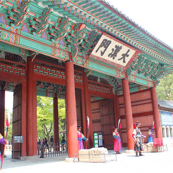实用 另外,除了风景,这里的守门将换岗仪式也是一年365日从不间断的演出,是首尔不容错过的一道风景德寿宫就在市中心,在首尔广场对面。但是外面的喧哗丝毫都影响不到里面的优雅环境。看宫内的建筑,每一处都会让然感觉到安心。另外,除了风景,这里的守门将换岗仪式也是一年365日从不间断的演出,是首尔不容错过...德寿宫就在市中心,在首尔广场对面。但是外面的喧哗丝毫都影响不到里面的优雅环境。看宫内的建筑,每一处都会让然感觉到安心。另外,除了风景,这里的守门将换岗仪式也是一年365日从不间断的演出,是首尔不容错过的一道风景。这个仪式每天定期举行三次,时间分别为上午10点30分到11点,下午2点到2点半,下午3点到3点半。仪式时间为30分钟,游客的话可以根据自己的情况,选择合适的时间段前来观看。这个观览是免费的,但是每周一、酷暑天气或严寒天气没办法举行仪式。 德寿宫守门将换岗仪式作为韩国传统宫廷文化的表演,为市民和游客提供了一个体验传统文化的绝好机会。守门将们华丽而又不失庄重的服饰也是一大看点,虽然有规定不能以换岗的门卫为背景拍照,不过可以在换岗仪式结束后站在门卫的身旁,一起合照留念。但要保持淡定有木有~ duang~ 展开