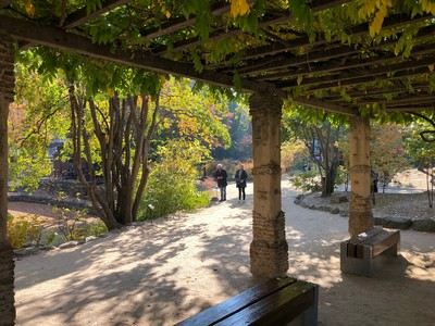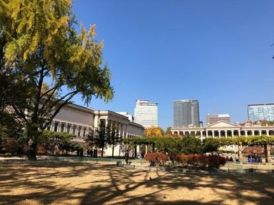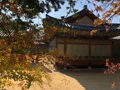 传统与近代相融合的德寿宫—说真的,原本我的计划真的只是沿着德寿宫外的墙散步而已,门票是1000韩元说实话,经过前面几天的游玩,对银杏红枫也开始有点审美疲劳。但是,这里的景色仍然让我眼前一亮:色彩丰富的秋树秋叶与散发古韵气质的宫殿、小桥流水相互辉映,有种庄严肃穆的美~ 大汉门的左侧就是德寿宫石墙路...说实话,经过前面几天的游玩,对银杏红枫也开始有点审美疲劳。但是,这里的景色仍然让我眼前一亮:色彩丰富的秋树秋叶与散发古韵气质的宫殿、小桥流水相互辉映,有种庄严肃穆的美~ 大汉门的左侧就是德寿宫石墙路的入口,所以这里要敲黑板了:在石墙路的左侧,就是“首尔市厅 西小门大楼1号楼”的十三层,有一个视野很好的展望台----“贞洞展望台”。这里作为首尔市的“共有都市首尔”工程的一环,部分会议室和储备仓库作为展望台对外开放。通过大窗一眼能看到下方的德寿宫和周边景色,展望视野极佳。 传统与近代相融合的德寿宫—说真的,原本我的计划真的只是沿着德寿宫外的墙散步而已,门票是1000韩元,不需要犹豫就同台湾小伙伴一起入内参观了。 德寿宫的内殿以咸宁殿为中心,位于德寿宫的东北侧。咸宁殿被用作高宗的偏殿和寝殿,也是高宗驾崩的地方。不同于其它的王宫,德寿宫内并没有皇后的寝宫,因为明成皇后宾天后高宗并未再迎娶新皇后,取而代之的是供奉明成皇后牌位的景孝殿。景孝殿1904年在火灾中烧尽,后来在原址上修建了德弘殿。德弘殿是专门用于接待国外使节的殿阁,外形虽为韩式建筑造型,但内部装饰偏西式。德寿宫内殿区域内的多处殿阁在1919年高宗驾崩后被迅速拆除,原址上建造了莲花池和散步道。 展开