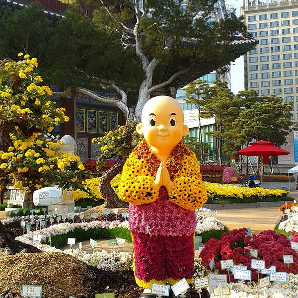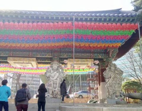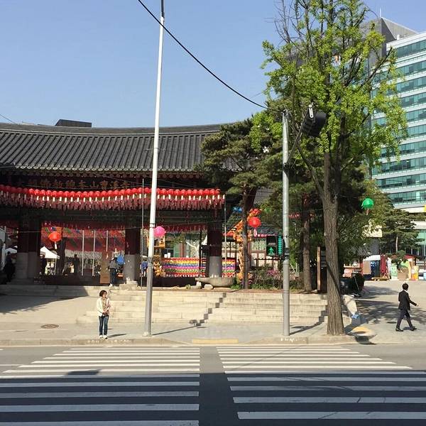 虽然比不上国内庙宇,但是里面也有金身三世佛。路遇寺庙法式,进去参拜了一下路遇寺庙法式,进去参拜了一下。虽然比不上国内庙宇,但是里面也有金身三世佛。总觉得这是首尔类似雍和宫似的存在,出来之后也有香火一条街~