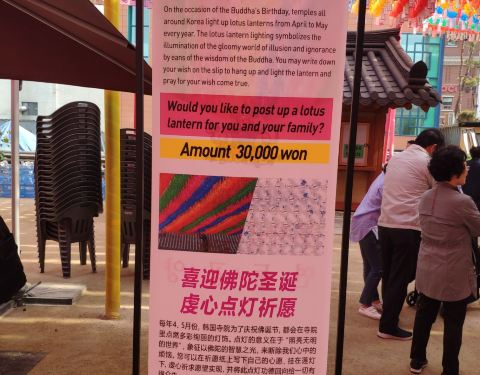 我们经过的时候正是韩国佛诞节前夕,寺院正在做祈祷活动,这五颜六色的灯笼一下子令我们着迷,还用很...我们经过的时候正是韩国佛诞节前夕,寺院正在做祈祷活动,这五颜六色的灯笼一下子令我们着迷,还用很多灯笼拼成了韩国的字样,满眼醉在这五光十色之中。