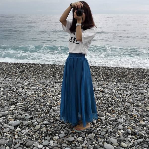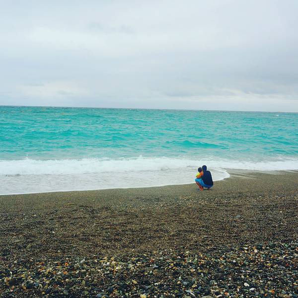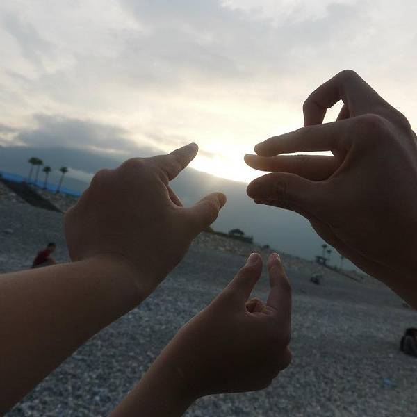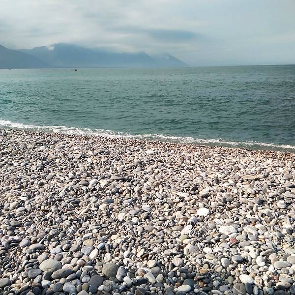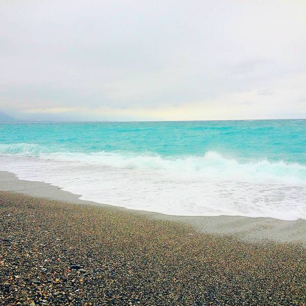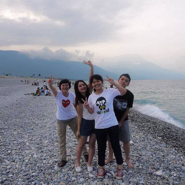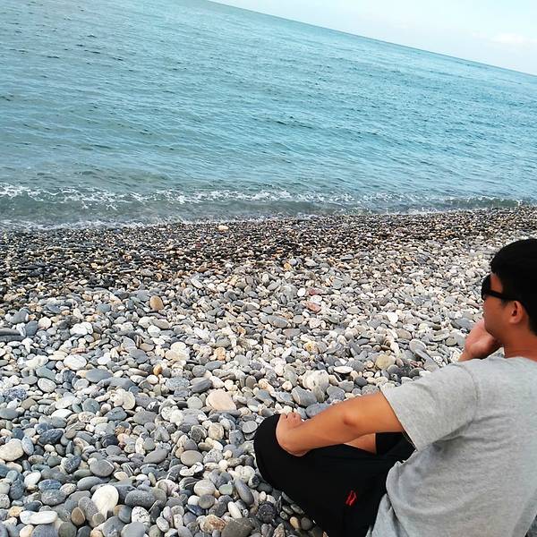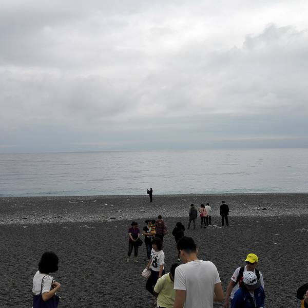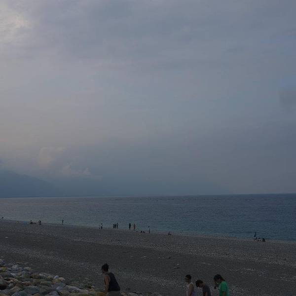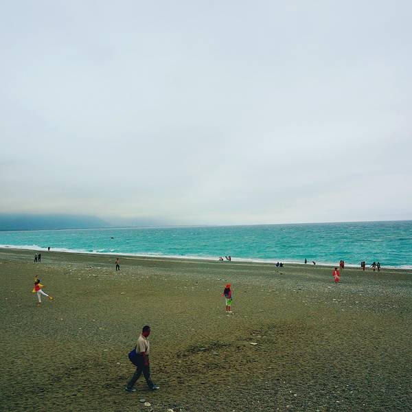 大概是在太鲁阁走累了,我几乎是一路睡到了七星潭,下车时才发现已近傍晚。太阳躲在了厚厚的云层后面,天灰蒙蒙的,但碧蓝的海水还是一下子抓住了大家的眼球。七星潭的海,是浅浅的马卡龙蓝,如果阳光晴好,一定会更加迷人~~~七星潭最有名的是圆石海滩,一块块碎石被海水打磨得光滑圆润,比起大海,貌似来这里的游客更爱拍石头。天空飘起了细雨,风阵阵吹来,浪渐渐翻涌,好几次都差点把我们卷走,也因为这不太好的天气,让我们有幸看到了大海的另一种不寻常的表情。希望下次来的时候,你会用灿烂的微笑迎接我们^^