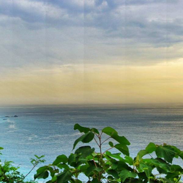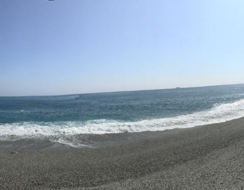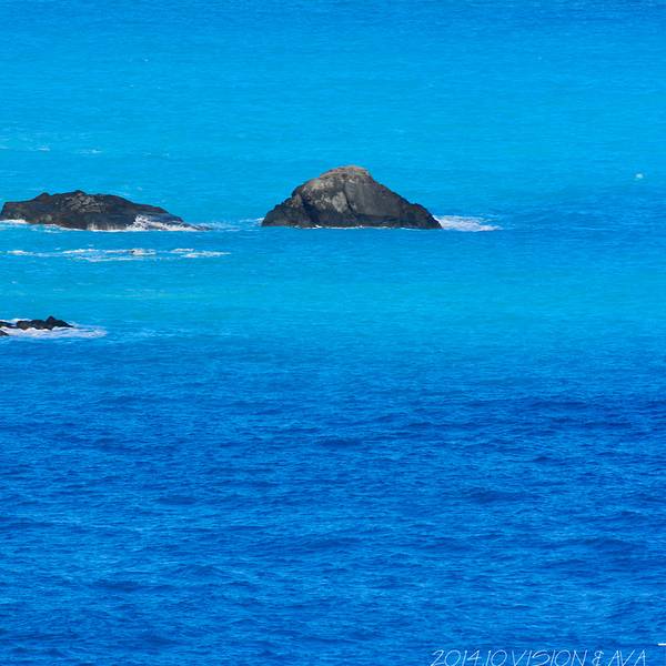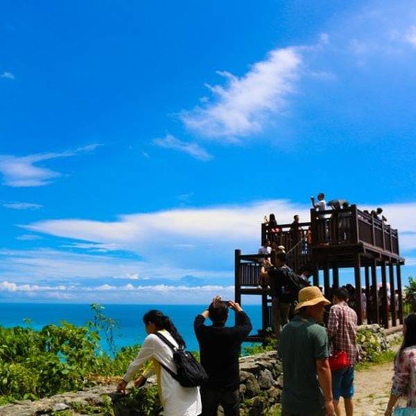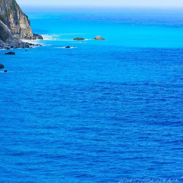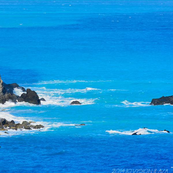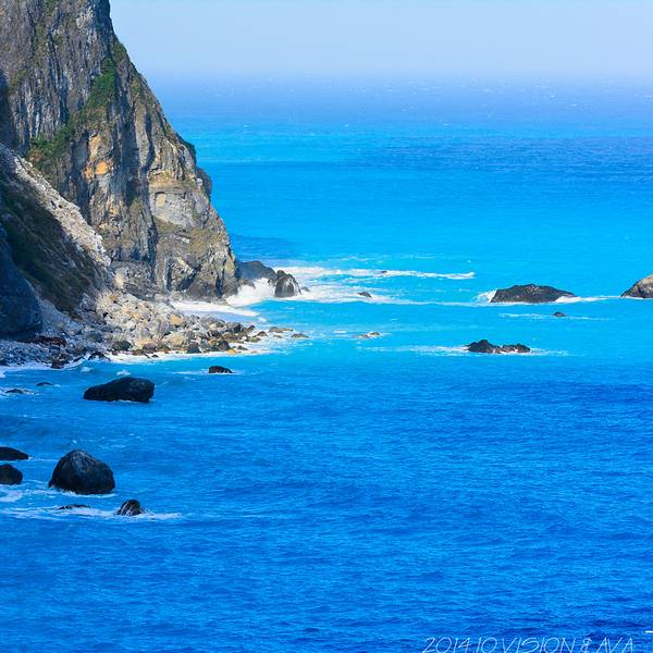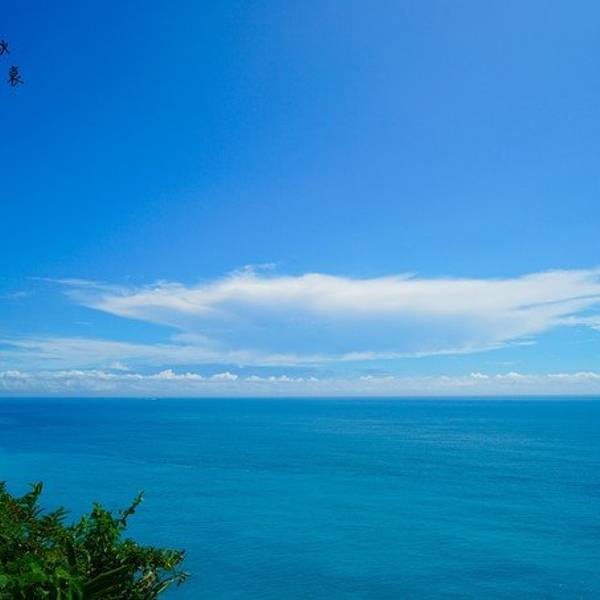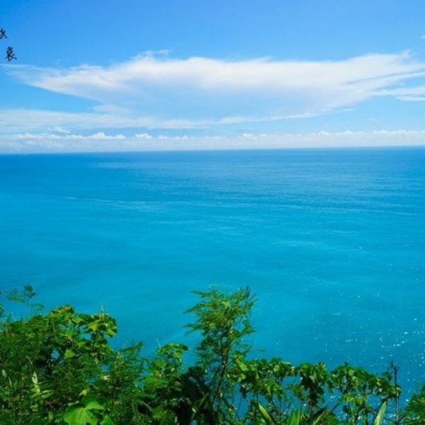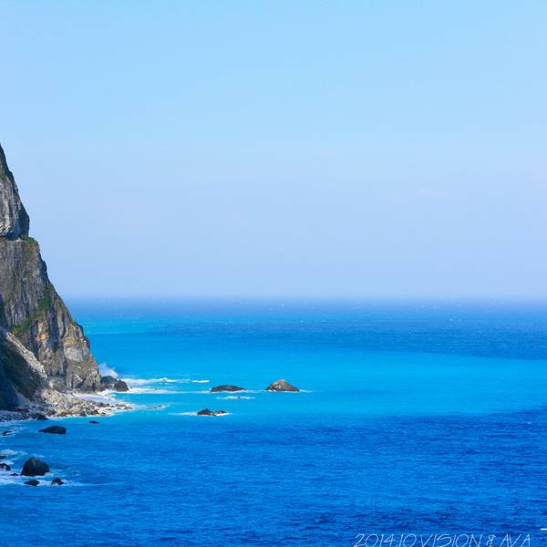 一面是大海,一面是悬崖峭壁,路边可以停车,然后步行两百米左右到观景台,便可以看到海岸线。观景台分几层,可以一直走到海边。不过往下走时指示台风吹坏了步道,游人不能到达海滩上。从观景台,可以看到海天一色。海水颜色间隔明显,海水由于深浅不一呈现出不一样的蓝色,站在崖边,吹着海风,真想一头扎到海里游个一公里,从淡蓝色游到深蓝色。