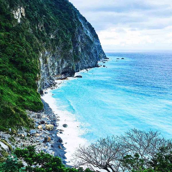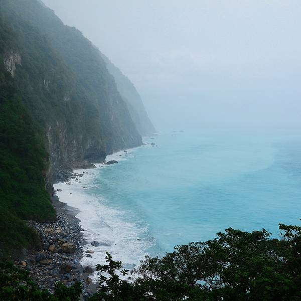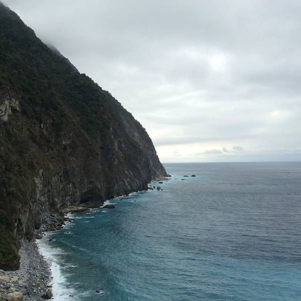 ...罩住,阴天也无法掩盖它的蓝,朦朦胧胧的雾气环绕让清水断崖犹如人间仙境,不禁感叹,绝美,人间绝景【Day 8:花莲一日游(拼车游太鲁阁——清水断崖——七星潭)——晚上自强夜市——回台北】