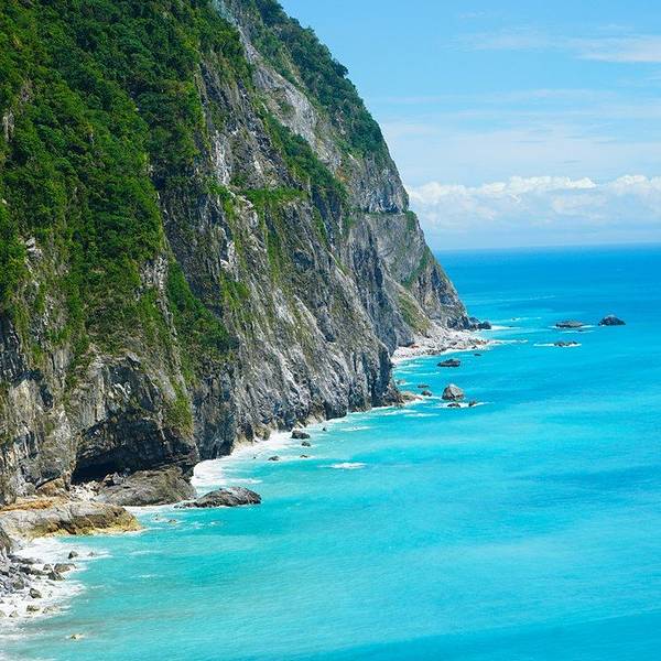 花莲的【清水断崖】是台湾八大奇景之一,高耸的绝壁直插太平洋,海水呈现层次分明的蓝色,特别是晴天是海水蓝的更加通透。