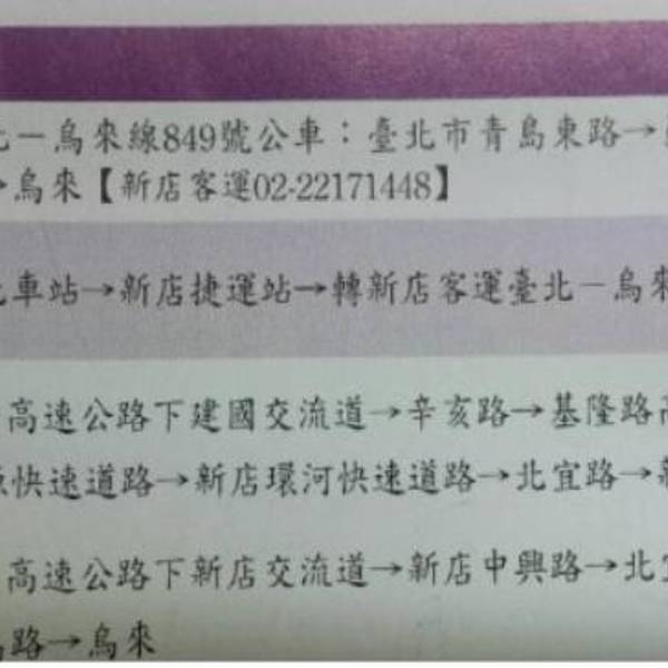 桃园火车站后站搭乘台湾好行巴士【慈湖线/小乌来线(仅假日开)】,直搭小乌来。