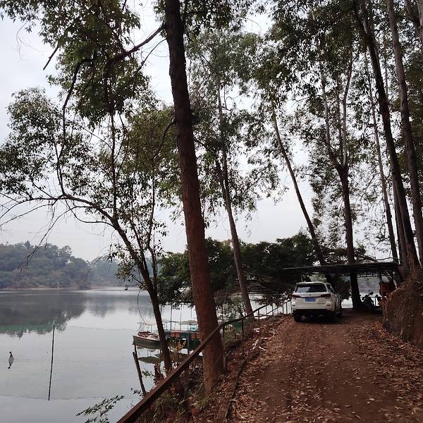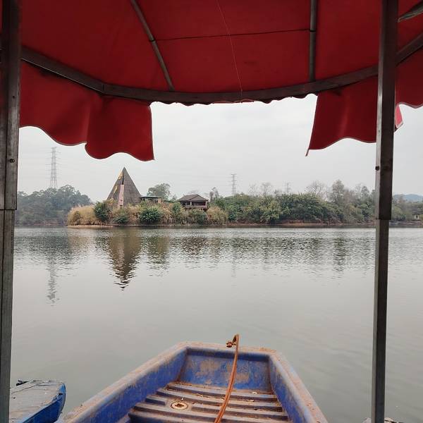 到南宁岭头凰竹盐鸡养殖基地吃饭,要坐船,在金沙湖景区亲水休闲园旁边的码头坐上小船,慢悠悠的开过去,挺惬意的。