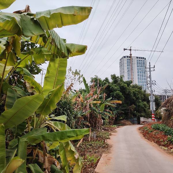 久了不去农村,在南宁金沙湖景区外面的路上看到一片芭蕉树,挺开心的,这里没有农田了,但是有人在有限的荒地种了青菜和芭蕉,种得还不错哦。