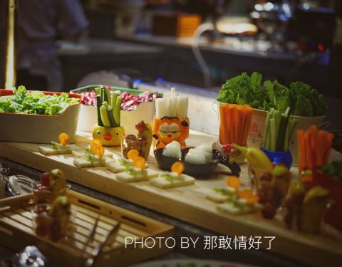 周一、周二晚餐是“火锅”主题,有多种锅底口味可选,可以在大锅煮好直接吃,也可以选择吃单人小锅。周三、周四晚餐则是“海鲜”主题,十几种海鲜不限量任吃。烤羊腿、锡纸烤三文鱼和铁板煎羊小排等,人气也颇高...