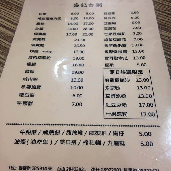 澳门最有名,最受居民欢迎的早餐店!可能白粥油条对于中国人来说就是一份普通到不能再普通的一份早餐了。但是在澳门,却是有一家白粥做得非常成功,在澳门这样小的地方,就有好几家分店,那个就是盛记白粥!如果...澳门最有名,最受居民欢迎的早餐店!可能白粥油条对于中国人来说就是一份普通到不能再普通的一份早餐了。但是在澳门,却是有一家白粥做得非常成功,在澳门这样小的地方,就有好几家分店,那个就是盛记白粥!如果是去的话,比较建议去台山店那家,那家距离澳门关闸非常近,从入境大楼走过去应该5分钟不用就到了,如果你一大早就来到澳门游玩,建议先到盛记白粥吃上一顿具有澳门特色的早餐,再去疯狂游玩噢!餐厅非常好找,就在马路边,乘坐公交车1; 3; 5; 9; 9A; 10; 25等路线在巴波沙大马路-公交车站下车后,正对面就是盛记白粥了,门面的话在澳门算是比较大的了。餐厅里面的装修非常简单,和普通的茶餐厅差不多,但是整个用餐环境都干净卫生,明亮舒适。来到这里不得不试的肯定是白粥,虽然我个人觉得挺怪的,像喝豆浆一样,但是我朋友就觉得很好吃。这里的炒面和咸煎饼也非常好吃的,特别是在搭配白粥后。人均大约25左右,在澳门的话,这个是正常价格的。确实很不错的一家早餐店,建议旅客和居民都来试试噢!
