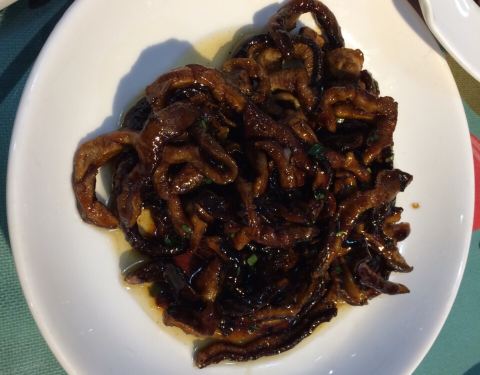 到常熟旅游,在这家餐馆吃了一顿饭。墙上的铜牌:中国蒸菜之乡--常熟蒸菜示范店,牛吧。春节期间,餐馆生意兴隆。参考网上的推荐点菜:素鳝丝、蕈油豆腐、得意楼蒸四喜、粉蒸肉、臭豆腐,都挺不错的,最喜欢的是素鳝丝,香菇做的,甜甜的很可口。餐厅服务还不错,菜价算中等吧。
