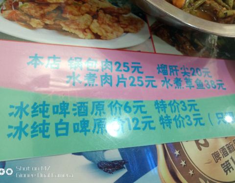 来之前没有仔细看评价,超级后悔。先说环境,店内和门头一样破旧,卫生间真的不太干净。再说菜品,就是很普通的烀饼,没什么味。进来的时候服务还不错,五个人点了五个菜,点完才落座。水煮肉片肉不新鲜,有臭鱼...
