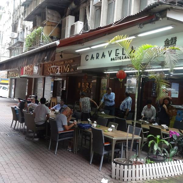 如果从玛嘉烈背后那条小巷子进去,则是金船饼屋(Caravela Pastclaria)。它家专售正宗葡国风味面包和点心,来此光顾的 90% 都是外国游客和土生葡人,炸牛肉卷(Croquete)、奶啡(Galão 一种半奶半咖啡的葡式咖啡)、酥皮卷(Tentúgal)是它家的特色,不过要按中国人的标准评判来看,它家的菜品未免过于单调乏味了些。 另外,它家店员都是葡萄牙人,不懂中文,所以来这点餐都要么讲葡文,要么讲英文。