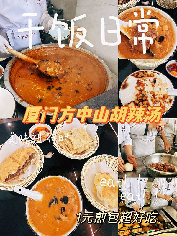 口味:精品胡辣汤10元。在湖里万达边上,曾经在河南吃过胡辣汤的我不得不说,真的正宗,就是这个味。很多人不一定吃的惯,它的辣是胡椒花椒的那种麻辣,吃了鼻头甚至全身都会冒汗的那种。设想一下,我那年冬天在河...