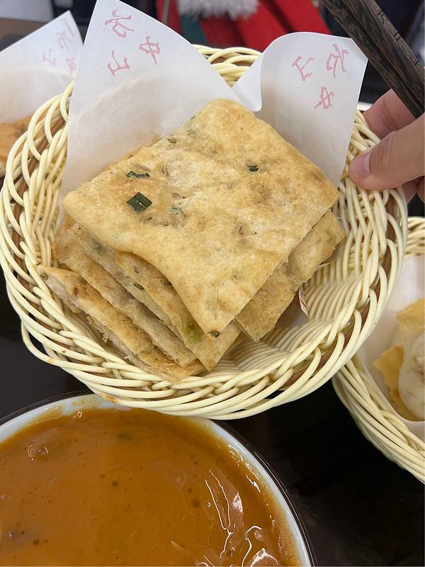 - 葱油饼非常好吃。以前来吃过一次,是另外一家店。但我们感觉还行,就是有些辣,不过是真的开胃啊