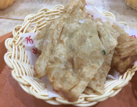 葱油饼 3.5元半张,诀窍就是要趁热吃,比较脆,冷了会硬。