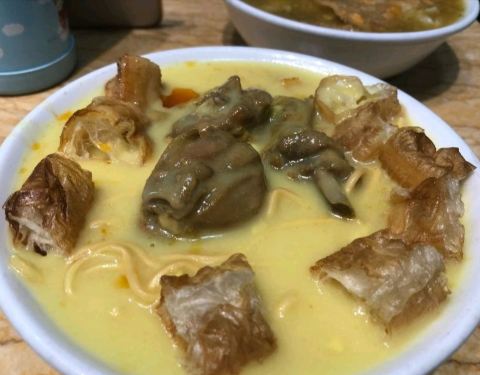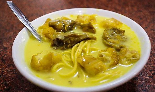 缅甸风味美食店,开在澳门的缅甸华侨聚集地,滋味更是不必多说了。招牌鱼汤面是一定要尝试的美食,鱼肉、炸面、豆饼的搭配又新奇又美味,而且没有一点腥味,鲜香诱人;椰汁鸡面也是招牌餐点,面条搭配着椰浆、鸡腿、油条等,非常有人气。