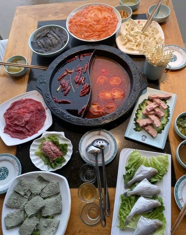 【口味】火锅:番茄鸳鸯锅,麻辣鲜香,味道好,菜品都很新鲜,份量足,性价比高。