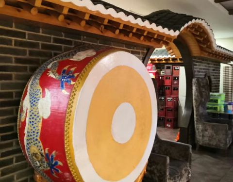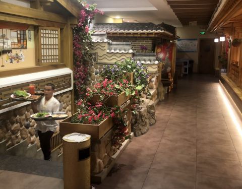 民族风情浓厚的餐厅,服务员穿朝族族服饰。
