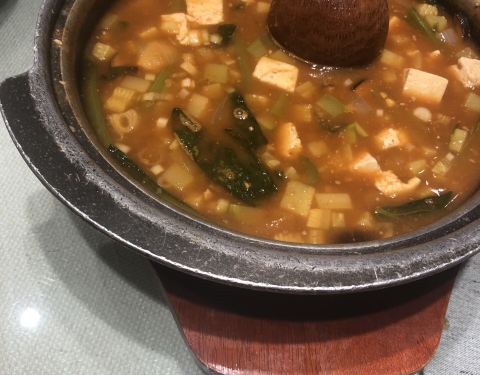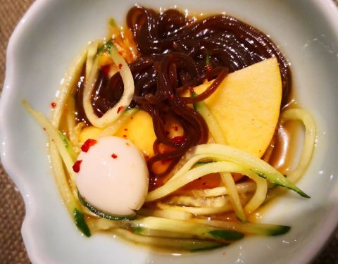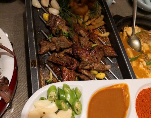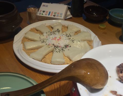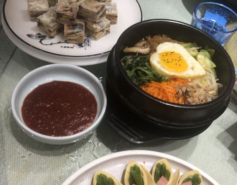 长春特别出名的朝鲜菜,环境整洁,服务员也是少数民族的姑娘,很温柔的感觉。 席地而坐颇多意趣。 鸡汤是用参熬的,份量很足,味道很浓。烤肉用苏子叶卷了吃,香而不腻。冷面酸甜爽口,打糕软糯酥香。 狗肉是特色,但我们有点欣赏不来。