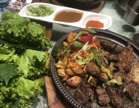 - 烤肉用苏子叶卷了吃,香而不腻。长春特别出名的朝鲜菜,环境整洁,服务员也是少数民族的姑娘,很温柔的感觉