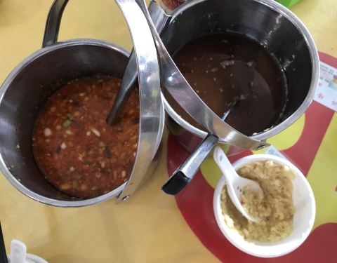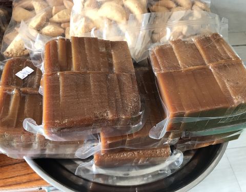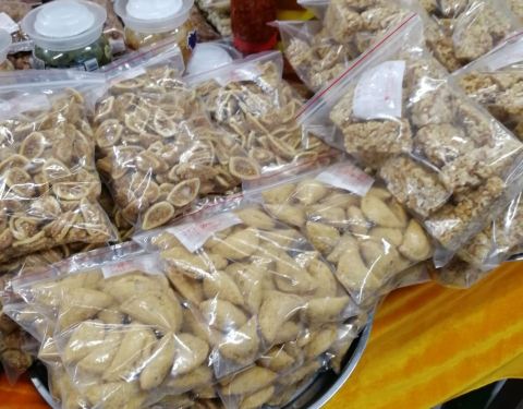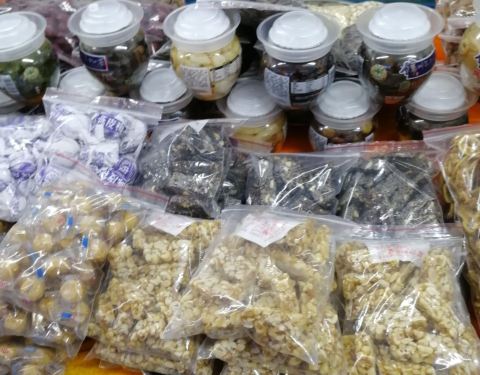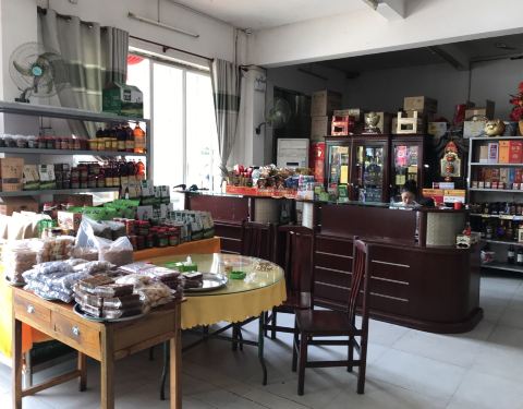 餐馆里有卖薏粑,也卖定安特色小吃如年糕和粽子,还有一些调味品和饼干。途中转来定安的这家餐馆吃午饭