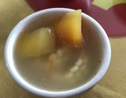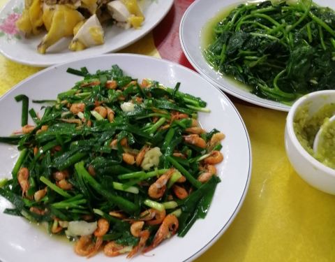 我们早上从新加坡飞海南,中午抵达海口。朋友从海南美兰国际机场接了我们就回琼海。途中转来定安的这家餐馆吃午饭。 午餐时间,餐厅都坐满了吃饭的顾客。这里主打海南菜肴。 朋友点了我爱吃的烤温泉鹅,还点了我先生爱吃的咸鱼茄子煲。服务员推荐她们的玉米木瓜汤和定安炒杂菜。咸鱼茄子煲和炒杂菜很下饭,我们每人都吃了一碗鸡油饭。 餐馆里有卖薏粑,也卖定安特色小吃如年糕和粽子,还有一些调味品和饼干。我买了一些回去乡下送亲戚们。