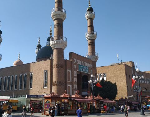 这里是新疆乌鲁木齐具有标志性的建筑物~大巴扎和清真寺,大巴扎餐厅异域食品和歌舞表演让人感觉吸引,我喜欢的羊肉抓饭已经深深的吸引了我的胃,当然还有很多的烤羊,烤肉奶食品等等,这里是第一次来乌鲁木齐不容错过的地方
