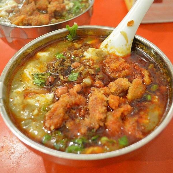 在豆腐脑中加入粉蒸肥肠和牛肉的吃法,当地人称之为“鸳鸯”。身为北方人,这种小食我受用的很,豆花的雪白、拌着香菜的翠绿,边上飘着红通通的辣子。用调羹舀起,还有粉条,这便是牛华豆腐脑的特点啦! 来到这里点上一碗,麻麻辣辣、热乎乎,慰问一下饥肠辘辘地胃再好不过了,那感觉很巴适哟! 人均:8元 推荐指数:★★★★★