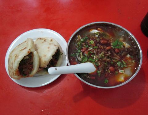 说实话没有感觉特别好吃,油腻腻的,牛肉夹馍味道稍好一点,唉,出来玩就不应该对特色小吃抱太大希望...