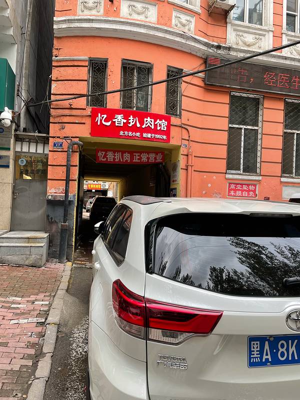 有很多地图跟攻略上都写过这家,忆香扒肉,道里区难得需要找的小饭店,而且人贼多。地址在经纬头道街,其实不难找,新阳路街口的位置是经纬二道街,往儿童电影院方向的下一条街,就是经纬头道街。街口有店名,但...