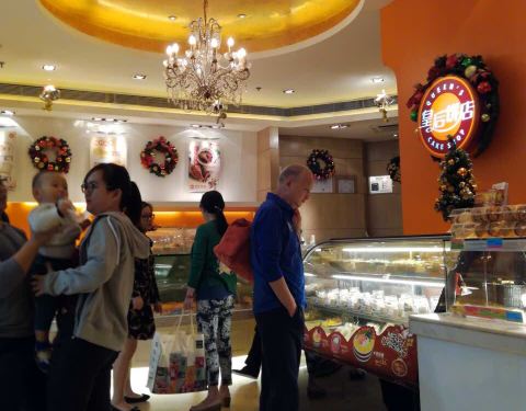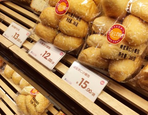 ...不少购买面包和蛋糕的顾客,加上还有支付宝满18减3的优惠,总体性价比要比美心和圣安娜饼店的要高