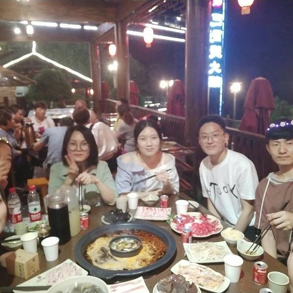 重庆旅游真的是无辣不欢 去看完南山一棵树 来这边的山庄吃的火锅 原本是打算上枇杷园的 但是后来和当地人沟通聊天知道这家店也很不错 看了点评两个打分 选择了这边!!! 环境真的很壮观 一片山庄高高低低都是它家的 露天的 亭子间的 室内的 都有 我们选择了室外的亭子间 吃起来别有一番滋味 之前的几天吃火锅都没吃到血 去了玩说都被售完了 这边有 果断点 辣度也增加了一档 感受重庆辣味道 服务员阿姨真的炒鸡热情 非常好 它家的辣锅辣油真的很棒 原本我们已经买好了火锅底料 在这边又囤了些 等快递寄到家